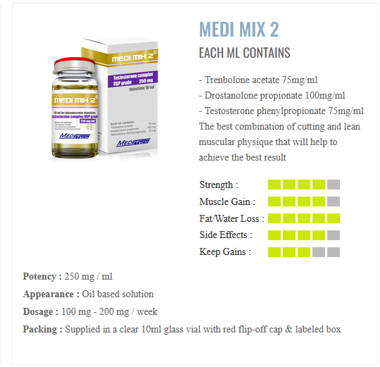![]() ![]() Medi Mix 2 injections for sale by the Meditech Pharma steroids company contains 250mg in total of three different kinds of fast acting anabolic steroids called Rip Blend or One Rip. Popular with bodybuilders who want to get shredded and ripped as part of a cutting cycle and it has a half life of about 1 day. ![]() ![]() ![]() |