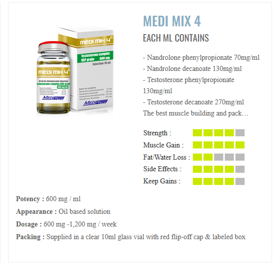 ![]() ![]() Purchase Meditech Pharmaceuticals Medi Mix 4 600mg/1ml/10ml NandroTest multi-dose steroid injection vials for sale online for building massive muscles. ![]() ![]() |