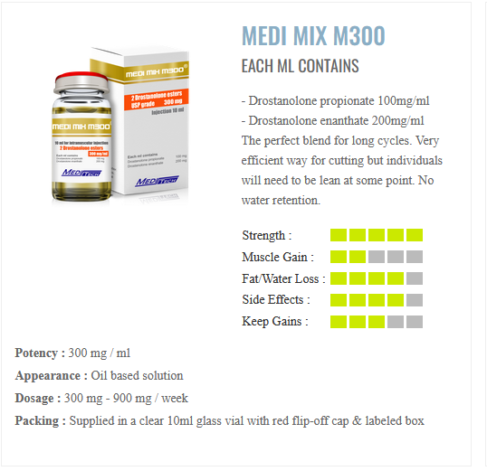 ![]() ![]() Medi Mix M 300 injections for sale by the Meditech pharmaceutical company contains 300mg in total of two different fast and slow acting masteron esters called Mast Mix. Popular with athletes and bodybuilders for a cutting or bulking cycle. ![]() ![]() |