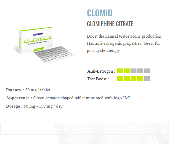 ![]() ทำหน้าที่เป็น SERM (Selective Estrogen Receptor Modulator) หรือป้องกันผลกระทบของเอสโตรเจนเนื่องจากการใช้ prohormones/steroids Clomiphene citrate เป็น SERM (Selective Estrogen Receptor Modulator) ใช้เพื่อป้องกันผลกระทบของ Gynocomastia / Gyno (การขยายตัวของหัวนมบนหน้าอกเนื่องจากฮอร์โมนเอสโตรเจนส่วนเกินในร่างกาย) Clomiphene citrate ทำหน้าที่ป้องกันการเกิดขึ้นของ gyno effects เนื่องจากการใช้สเตียรอยด์ Clomiphene citrate มีความปลอดภัยแม้ในการใช้งานในระยะยาว ปริมาณที่แนะนำ: 50 มก.-100 มก./วัน เป็นเวลา 1-2 สัปดาห์หลังจากรับประทานสเตียรอยด์ (PCT) ![]() ![]() ![]() ![]() ![]() ![]() ![]() |