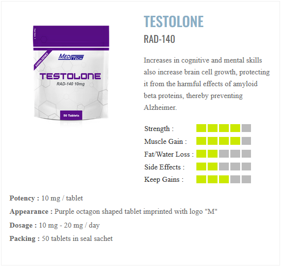 ในรูปแบบของ sarms สามารถใช้ในการทำ TRT (testosterlone replacement theraphy) หรือ จะนำไปใช้ในการสร้างกล้ามเนื้อโดยมีจุดเด่นของมัน คือ เสริมพละกำลังมหาศาล ความแข็งแรงสูง ไม่ต้องกังวลเรื่องไกโน หรือ อาการบวมน้ำ แบบ testosterlone ในรูปแบบของ anabolic steroid RAD 140 อีกชื่อคือ TESTOLONE อย่าไปจำปนกับ Testosterone (ฮอร์โมนเพศชาย) นะครับ คนละเรื่องกัน เป็น SARMs ตัวนึงที่นิยมมาก